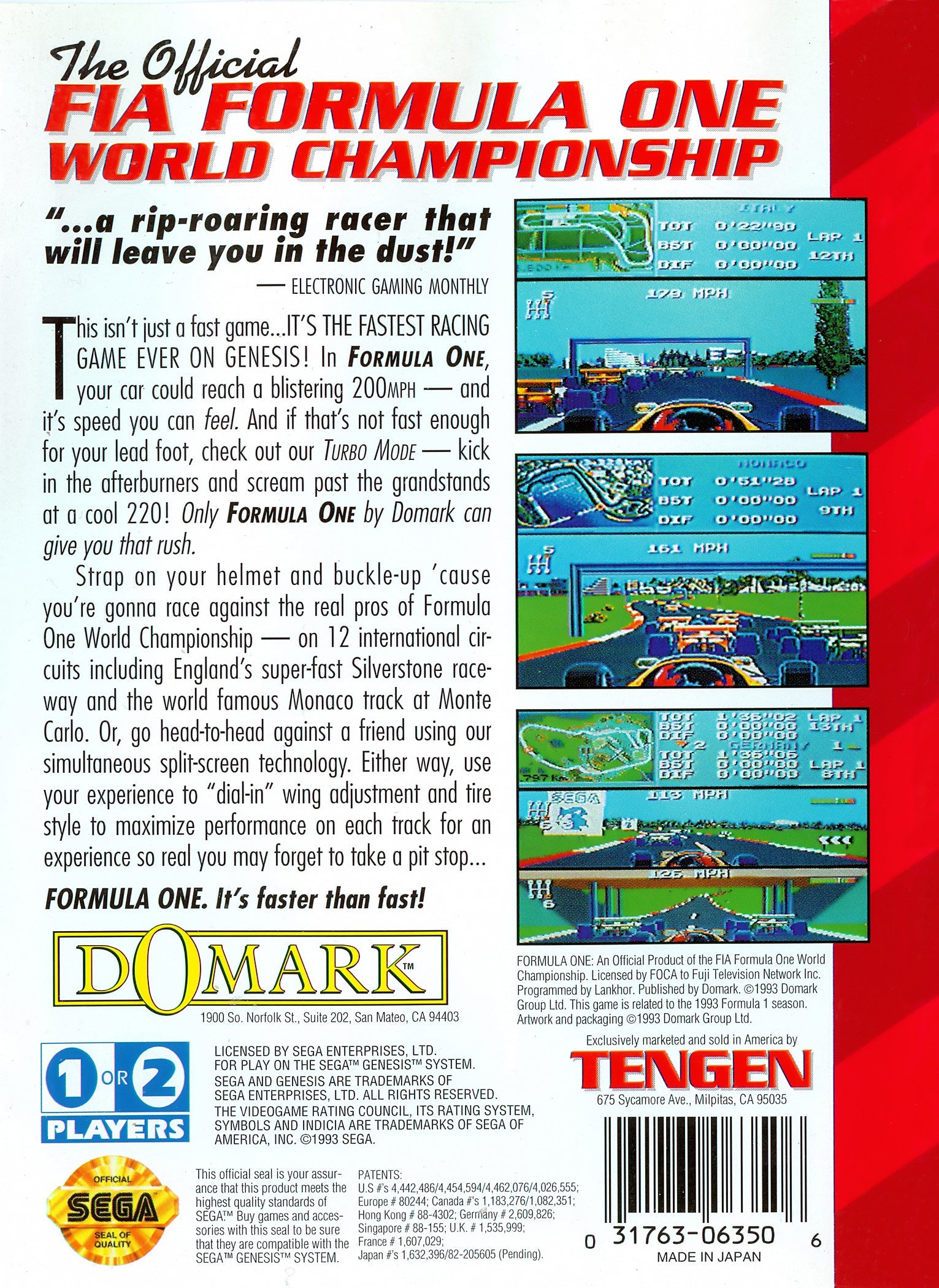 Formula One F1 Sega Genesis