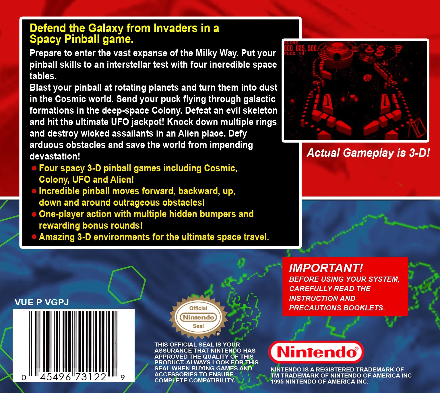 Galactic Pinball Virtual Boy